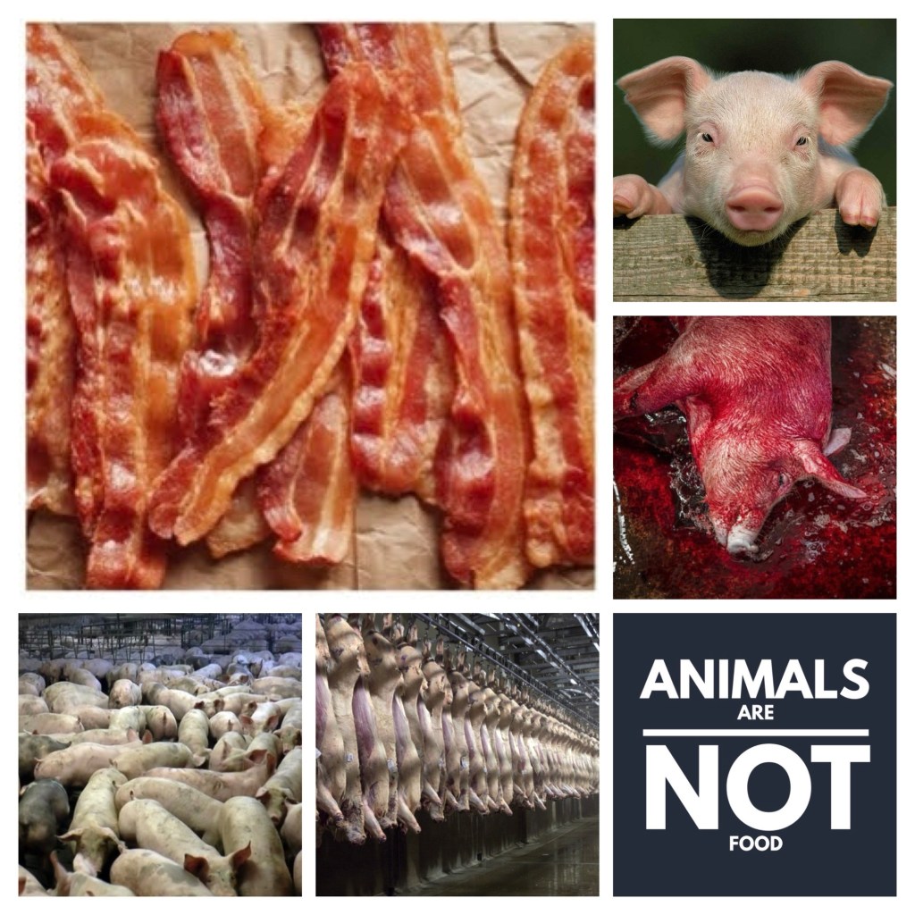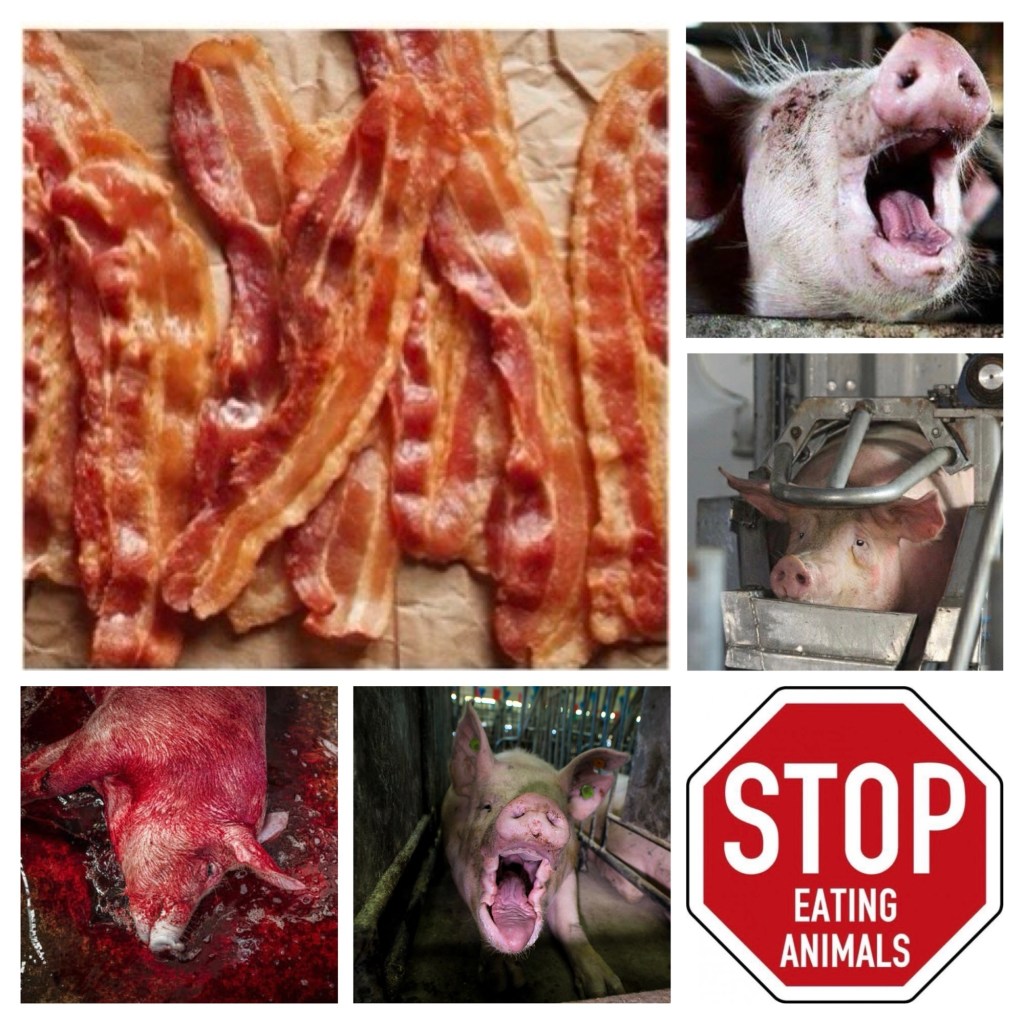 Eating bacon supports cruelty to animals.🐖🥓