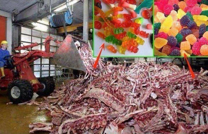 Gelatin is made from the body parts of slaughtered animals.